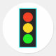 Bold graphic depiction of the Traffic Control Signal Light, in red, yellow, and green, with light blue border.
