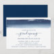 Modern and creative store grand opening invitation featuring a simple design with a navy blue watercolor brushstroke across the top, over a white background. The title is in a handwritten font with swashes and the event details are in a sans serif font. The backside is a solid navy blue. These unique invitations are great for the grand opening of an artistic business.
