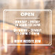 Window sign for store hours of operation.  Personalise it with your shop's personal business hours and website.  Display it on the front window or door of your location.
