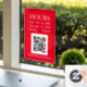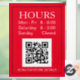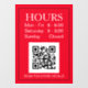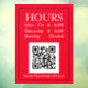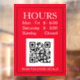 Store Hours Open Sign, QR Code, White Text on Red Window Cling