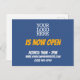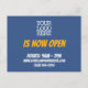 Upload your store’s name and hours of operation and send this postcards to your employees to let them know your store is open. Design in classic blue, brilliant white and saffron, all 2020 colours of the year.