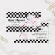 Baby Shower Save the Date -Black and white chequerboard and adorable stork carrying a pink wrapped baby girl- Cute baby shower Save the Date business card for handing out at work or playground ... where ever - easier than sending invites for recipients close to home