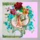 Elegant ,colourful,vibrant vintage style floral design with a baby and flying stork among the beautiful romantic pink,red roses,teal blue spring flowers by Bulgan Lumini (c).Easy to customise with your own text and inizials for baby showers,child's birthday parties , or just about any event you wish!