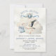Charming watercolor stork baby shower invitations. Features a stork with baby bundle and crest with ribbons and bows with last name initial, flying through the clouds to deliver a baby boy. Perfect for a baby boy!