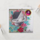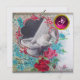 Elegant ,funny vintage style floral design with a baby and flying stork among the beautiful pink,red roses,blue spring flowers and a vibrant, shiny ,pink,fuchsia 3D ruby gem stone. by Bulgan Lumini.