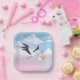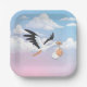 Stork Carrying a Baby Cloudy Sky Paper Plate