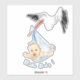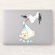 Stork Carrying Baby Funny Stickers with Text - MIGNED Painting Design - Customisable - or Add Your Custom Text / Name with Customisation tool !