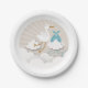 Baby shower paper plates featuring an illustration of a stork in the clouds with a blue bundle. Text says "It's a Boy"