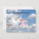 Stork in the clouds delivering a baby girl.
