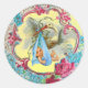 STORK GIRL BABY SHOWER PINK ROSES AND BLUE FLOWERS CLASSIC ROUND STICKER