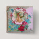 STORK GIRL BABY SHOWER /PINK ROSES BLUE FLOWERS 15 CM SQUARE BADGE