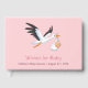 Stork carrying a baby in a bundle. Customisable text. You can change the background colour in advanced edit mode by changing “Background” colour.