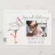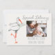 This hand drawn stork holds a playful Special Delivery sign shows off a picture of your new baby! Add a pic and text
