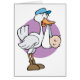 Celebrate the birth of a new arrival in the family with this cartoon stork and adorable little baby!