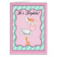 Announce your little bundles of joy with this pink and green card with a stork holding three baby girls.