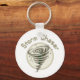 Light olive green design of a tornado whirling inside a circle with "Storm Chaser" in text over the top.