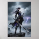 The moody lighting, misty background, and cinematic scale bring epic emotion to this piece. Perfect for fans of Nier:Automata, cyberpunk warriors, and dark fantasy art. A bold, collectable print that commands attention in any room.