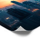 A storm rages over a futuristic city, with lightning illuminating skyscrapers. A dramatic and cinematic urban scene.