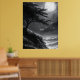 Stormy Cliff Moonlight in Monochrome Black & White Poster