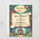 This elegant fairytale-style save the date invitation is perfect for a modern wedding. The retro design features a vintage enchanted forest, a castle illustration, and black calligraphy on a storybook-themed background.