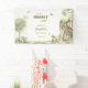 Celebrate a new adventure with this whimsical 'Bearly Wait' banner. It features a watercolor bear gazing at a delicate butterfly and a cozy treehouse in a trendy sage green storybook style. Perfect for a modern woodland baby shower, the name and event date are easy to personalize for a custom touch. Part of the Storybook Woodland Bearly Wait Collection; find matching stationery and decor for a cohesive look. Available as a durable vinyl print. ©Susanne Sachers - Sunny Mind 🌞