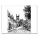 A detailed black and white hand-drawn sketch of Stow-on-the-Wold, a historic market town in the Cotswolds. This vintage-style line illustration captures the charm of stone cottages, the market square, and traditional English countryside architecture. Perfect for admirers of history, travel, and the timeless beauty of the Cotswolds.