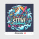 A vibrant 4" x 4" Stowe sticker featuring snowy mountain peaks, gondolas, skis and a cosy alpine village in a bold modern travel-art style. With its striking winter colours and energetic resort feel, this design makes a fun souvenir-style sticker for laptops, water bottles, notebooks, ski helmets and travel gear. A great choice for skiers, snowboarders and mountain lovers with a connection to Stowe and Vermont.