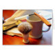 A vintage straight edge razor, brush and strop evoke a bygone era -- a great nostalgic card for any occasion.