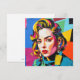 “Strasha” - Gloss Pop Collage Dream. A modern digital homage to retro glam, this portrait channels pop art brilliance through loud colours, sharp lines, and a rebellious gaze. With a cut-and-paste collage backdrop and mini figures as accessories, the piece disrupts convention while celebrating individuality and bold femininity. It’s electric, editorial, and unashamedly vibrant.