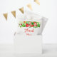 This beautiful and elegant baby shower thank you favor bag features watercolor strawberries, daisies and foliage. The text combines handwritten script and serif fonts for a stylish and modern look. This is perfect for a spring or summer rustic baby shower.
