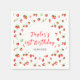 This beautiful and elegant napkin features watercolor watercolor strawberries, daisies and foliage. The text combines handwritten script and serif fonts for a stylish and modern look. This is perfect for a spring or summer rustic birthday party.