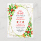 This fun and whimsical save the date postcard features watercolor strawberries, daisies and foliage on a gold geometric frame. The text combines handwritten script and serif fonts for a stylish and modern look. This is perfect for a summer rustic wedding.