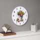 A clock with a summery graphic of a bunch of strawberries overflowing in a bucket.