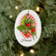 This oval keepsake ornament has a very real looking vintage strawberry image on the front. I have used a red and white checked gingham background behind the strawberries to set of the redness of the berries and the beautifully shaded green leaves. The gingham oval fades at the edges for a country rustic look. The name on the front can be changed. On the back is text which says, "I love you berry much." and the name of the gift giver. You can also change this text.