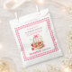 Basket with strawberries, hearts and pink bow Berry First Birthday Thank You favour bags. Our "Berry First Birthday" Thank You favour bags features an adorable design. A charming illustration showcases an overflowing basket of juicy strawberries and whimsical hearts, beautifully accented by a sweet pink bow tied to the handle, adding an extra touch of love and elegance. Above this delightful image, "Thank You" and the birthday baby's name are personalised, while the playful pun “Berry First Birthday” is elegantly placed beneath. All elements are placed in a white frame with hot pink and white gingham pattern border.