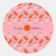 Strawberries Pink White Doodle Birthday Classic Round Sticker