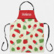 This is personalised custom summer pattern with red strawberries, watermelon, popsicle and monstera leaves. It's fun gift for women, chefs or diner owners. To change the name on the apron hit personalise button.