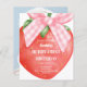 A large red stawberry with a pink bow for a Berry First Birthday party. Personalise and add your party details.