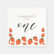 Cute strawberry illustrations, 1st birthday party paper napkins. Features, red illustrated strawberries border and pretty "one" script graphic.