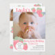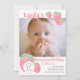 Berry Sweet Strawberry birthday photo invitation for baby's 1st birthday or any age.  Sweet and festive watercolor strawberries in shades of pink and green with whimsical pink text.
