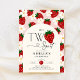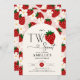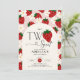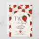 Strawberry 2nd birthday party invitation. Two Sweet invite. Cute trendy design in red and blush pink. Features strawberries, daisy flowers, arch and modern typography script heart font. Perfect for a stylish first girls bday celebration. Personalize with your own details. Printed Zazzle invitations or instant download digital printable template.