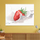 One large strawberry splashing into the cream. Change the background colour for a different effect, I have it set for a white background