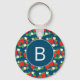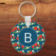 Strawberry and Flower Blue Pattern Monogrammed Key Ring