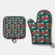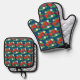 Strawberry and Flower Blue Pattern Oven Mitt & Pot Holder Set