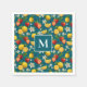 Strawberry and Lemon Blossom Design on Blue Napkin