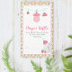 Enclosed with this charming diaper raffle enclosure card is an adorable watercolor Strawberry-themed baby outfit, complemented by a sweet stack of diapers adorned with strawberry vines. Alongside the strawberry hanger, shoes, and baby hat dangling delicately from a vine, this ensemble serves as a delightful centerpiece for our event. Set against a backdrop of Strawberry Blossoms pattern forming a heart-shaped arrangement of vines, this design brings joy and anticipation to our gathering. Customise with your details effortlessly by clicking the blue "Personalise" button for a stress-free experience.