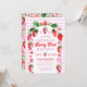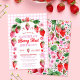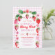 This Strawberry Berry 1st Birthday design features watercolor strawberries and blossoms in a colour palette of pink, red and green with a sweet pink gingham check pattern behind an arch. On the back of the design there is a pattern of strawberries and florals on a pink background. You can customise this invitation to your event. See the whole matching collection.