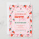 Strawberry Berry First 1st Birthday Gingham Invitation