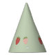 Top off your celebration with this adorable strawberry-themed party hat! Featuring a soft green background and alternating red and pink strawberries, it’s perfect for a Berry First Birthday or any sweet summer party. Lightweight, easy to wear, and customisable for your little one’s big day. It’s the cherry (or strawberry!) on top of your party look.