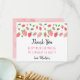 This cute birthday thank you card features hand painted watercolor strawberries and greenery.